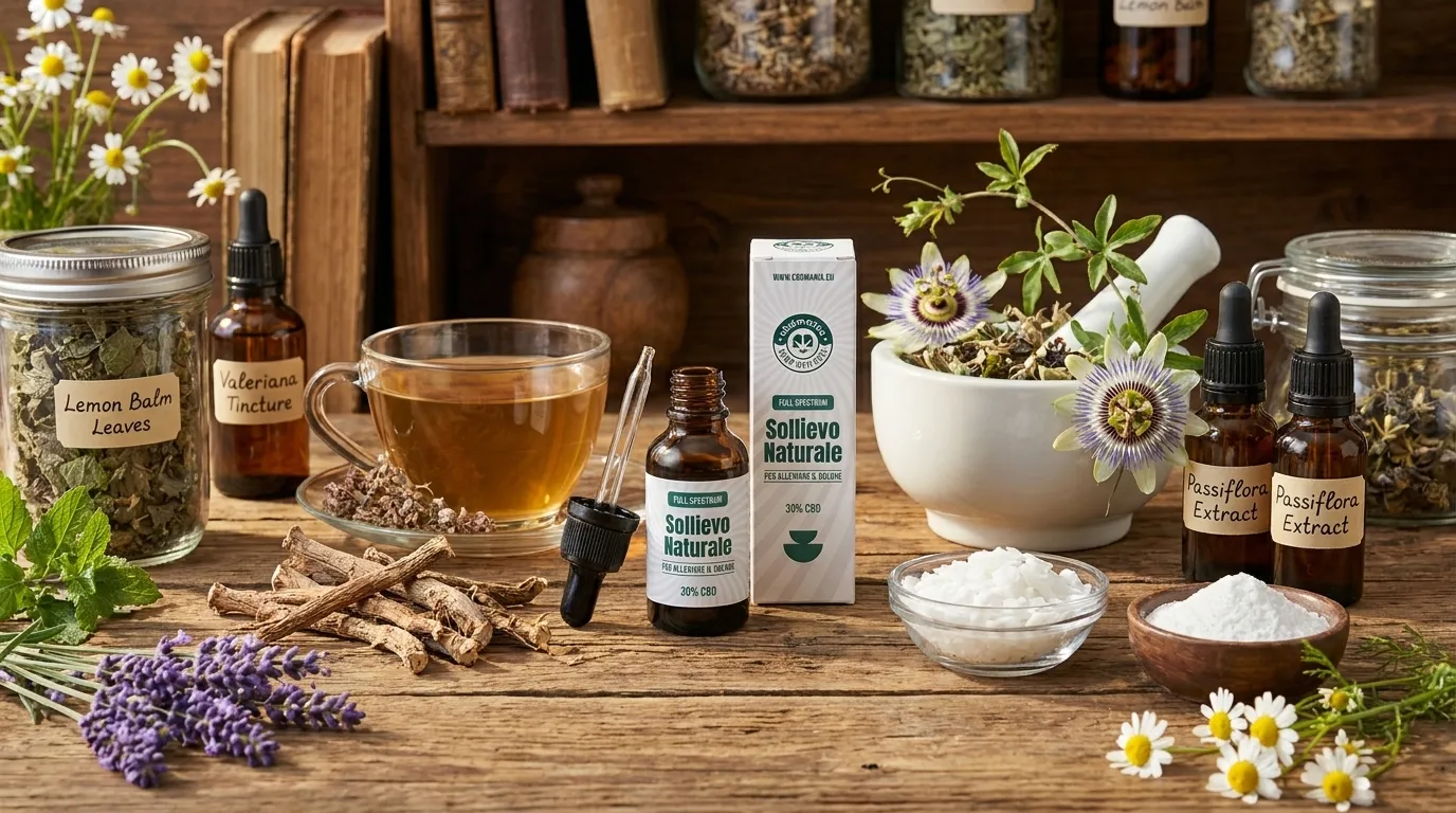 Ansiolitici naturali efficaci: CBD, valeriana, passiflora, magnesio e altri rimedi per calmare l'ansia senza farmaci. Guida con dosaggi e confronto con benzodiazepine.